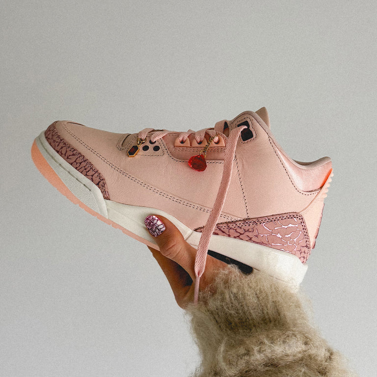 Der 14. Februar ist schon lange nicht nur für Verliebte sondern auch für Sneakerheads ein besonderes Datum. Schließlich haben viele Brands für diesen Tag mal etwas mehr und mal etwas weniger kitschige „Valentine’s Day“-Releases in der Planung – so auch bei Jordan. 2025 bringt man mit dem Wmns Air Jordan 3 „Treat Yourself“ einen für die Damen designten Colorway des Jumpman-Klassikers an den Start. Und auch wenn dieser offiziell nicht als Valentinstag-Release geführt wird, so eignet er sich doch perfekt als Geschenk an seine Liebste oder an sich selbst. Der Name „Treat Yourself“ ist sicherlich kein Zufall.