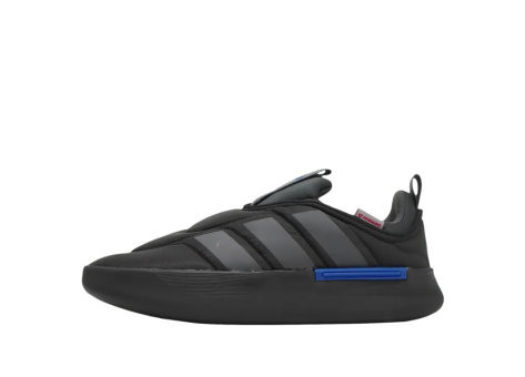 Las zapatillas adidas Originals Adipuff presentan un diseño moderno y deportivo, con una combinación de colores negros y detalles en azul. El calzado cuenta con cordones para un ajuste personalizable. El tacón plano proporciona una base estable y una comodidad óptima. La parte superior muestra las icónicas tres rayas de adidas, características de la marca. Estas zapatillas son ideales para el uso diario y aportan un aspecto moderno y deportivo a cualquier atuendo. El modelo destaca por su silueta casual y su diseño de color sencillo, lo que permite combinarlo de diversas maneras. A pesar de su apariencia deportiva, el calzado no está específicamente diseñado para un deporte en particular, sino que está pensado como un calzado moderno y cómodo para el día a día.