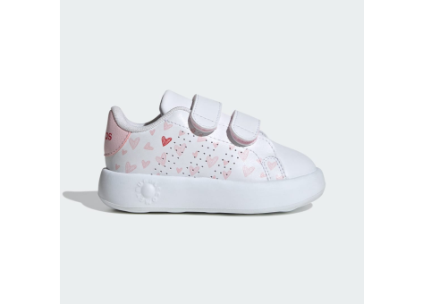 El modelo adidas Originals Advantage para bebé está diseñado específicamente para los más pequeños y ofrece un alto nivel de comodidad para diversas actividades, como jugar en el parque o visitar a la familia. Equipado con prácticas cierres de velcro, los zapatos son fáciles de poner y quitar. La suela de EVA de una sola pieza proporciona una suavidad y amortiguación excepcionales, lo que hace que la sensación al usarlos sea agradable y flexible. El material exterior está hecho de cuero sintético resistente y una mezcla de materiales sintéticos reciclados, lo que hace que el calzado sea duradero y sostenible. Con al menos un 20% de materiales reciclados, este producto contribuye a la reducción de residuos y a la conservación de los recursos naturales. En el interior, el calzado está forrado con un tejido que proporciona una mayor comodidad. El calzado tiene un ajuste normal y presenta un diseño clásico en blanco con un motivo infantil de pequeños corazones rosas y rojos en el lateral. En general, este calzado para niños es una combinación ideal de estilo, comodidad y conciencia ambiental.