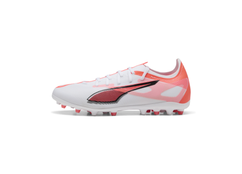 El PUMA Ultra 5 Match MG es un calzado de fútbol para hombre, diseñado específicamente para césped artificial (3G) y superficies de césped natural duro. El material superior de malla ligera proporciona una buena transpirabilidad y comodidad, mientras que el marco de soporte integrado estabiliza el pie y permite cambios de dirección rápidos. El innovador revestimiento GripControl en el material superior ofrece un control preciso del balón para un juego seguro y confiado. La suela exterior de TPU plana y ligera cuenta con múltiples tacos que proporcionan un agarre y una estabilidad óptimos en las superficies de juego previstas. El calzado tiene un ajuste normal a estrecho y está diseñado para jugadores que desean ser más rápidos y ágiles en el campo. El diseño combina la funcionalidad con el logotipo característico de PUMA y un aspecto moderno en color blanco con detalles en rosa. Este calzado es especialmente adecuado para futbolistas ambiciosos que valoran la velocidad, el control y la estabilidad.