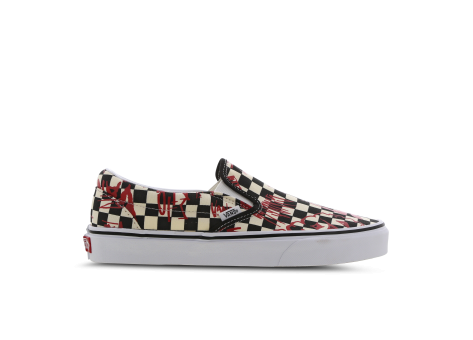 El Vans Classic Slip-On es una zapatilla versátil con un llamativo estampado a cuadros en blanco, negro y rojo. Su diseño combina elementos retro con un estilo clásico de skate, y es adecuado tanto para hombres como para mujeres. Su construcción tipo "slip-on" permite un fácil y cómodo calzado sin necesidad de cordones. El material exterior está hecho de lona resistente, que ofrece transpirabilidad y durabilidad. La suela de goma blanca con una franja negra lateral proporciona un buen agarre y una larga vida útil. El acolchado en el cuello del zapato aumenta aún más la comodidad. Estos zapatos son especialmente adecuados para el uso diario y para looks casuales, añaden un toque de estilo y forman parte de la conocida colección de zapatillas Vans.
