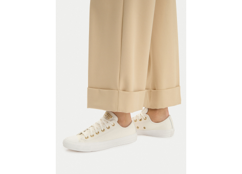 La Converse CHUCK TAYLOR ALL STAR Gold est une version améliorée de qualité du modèle classique OG Chuck Taylor. Cette version se distingue par sa tige en cuir, qui confère à la chaussure un aspect particulièrement élégant et raffiné. Les détails dorés, tels que les œillets et les éléments de logo, soulignent le design élégant. Avec sa silhouette plate et sa construction emblématique et intemporelle, la chaussure reste fidèle à son style rétro des années 1970 aux années 1990, ce qui en fait un classique de la mode. Le cuir assure robustesse et un aspect de haute qualité, ce qui rend la chaussure polyvalente, que ce soit pour un usage quotidien ou pour des looks décontractés élégants. Elle est particulièrement confortable et peut être ajustée individuellement grâce au système de lacets. La semelle en caoutchouc blanc offre une bonne adhérence et une résistance à l'abrasion. La chaussure n'est pas spécifiquement conçue pour être vegan, ni explicitement étanche ou doublée. En résumé, la Converse CHUCK TAYLOR ALL STAR Gold est une version élégante et classique de la sneaker, qui plaira aux amateurs de cuir et qui se démarque par son design.