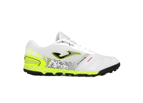 Le scarpe da calcio da uomo Joma Mundial Turf sono state progettate specificamente per l'utilizzo su campi in erba sintetica e su superfici in tappeto. La tomaia è realizzata in pelle di alta qualità, flessibile, traspirante, resistente e durevole, ed è arricchita da inserti in mesh e piccole perforazioni con tecnologia VTS per una ventilazione ottimale e un elevato comfort. Le scarpe offrono un controllo preciso del pallone grazie al materiale in pelle migliorato e sono dotate di una protezione in microfibra sulla punta con tecnologia PROTECTION per proteggere dagli urti. La suola intermedia, realizzata in Phylon leggero e flessibile, garantisce un'andatura ammortizzata e confortevole. La suola in gomma è dotata di profili Multitac e utilizza la tecnologia DURABILITY per garantire un'eccellente aderenza e durata su superfici dure. Questo modello è ideale per il calcio indoor e per le partite di calcio su campi sintetici, offrendo un supporto ottimale per movimenti rapidi e protezione. La combinazione di materiali di alta qualità e tecnologie innovative rende le Mundial Turf di Joma una scarpa sportiva performante e confortevole per i calciatori che giocano su campi in erba sintetica o su altre superfici rigide.