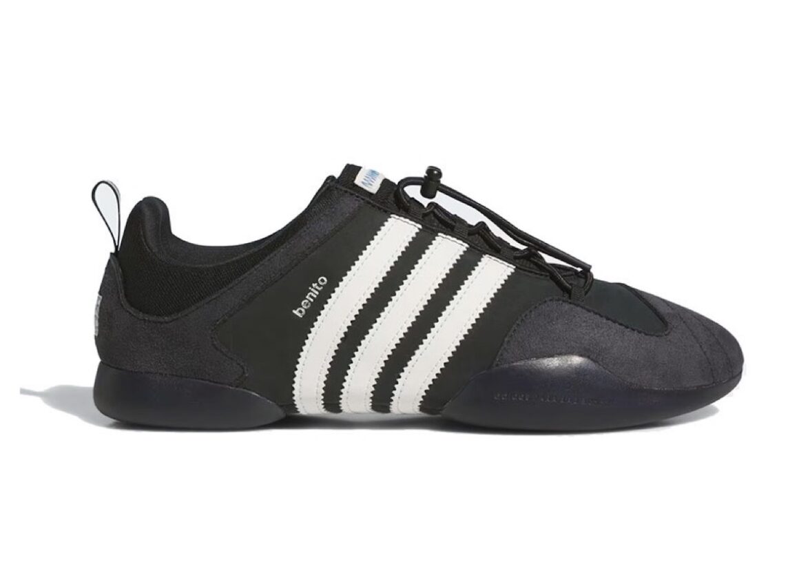 Da es sich um eine Bad Bunny-Collabo handelt, dürfen Details wie der „Benito“-Aufdruck über den Adidas-Streifen und der Size Tag hinten auf der Ferse nicht fehlen. Auch das Cord-Lacing ist ein auffälliges Designelement.