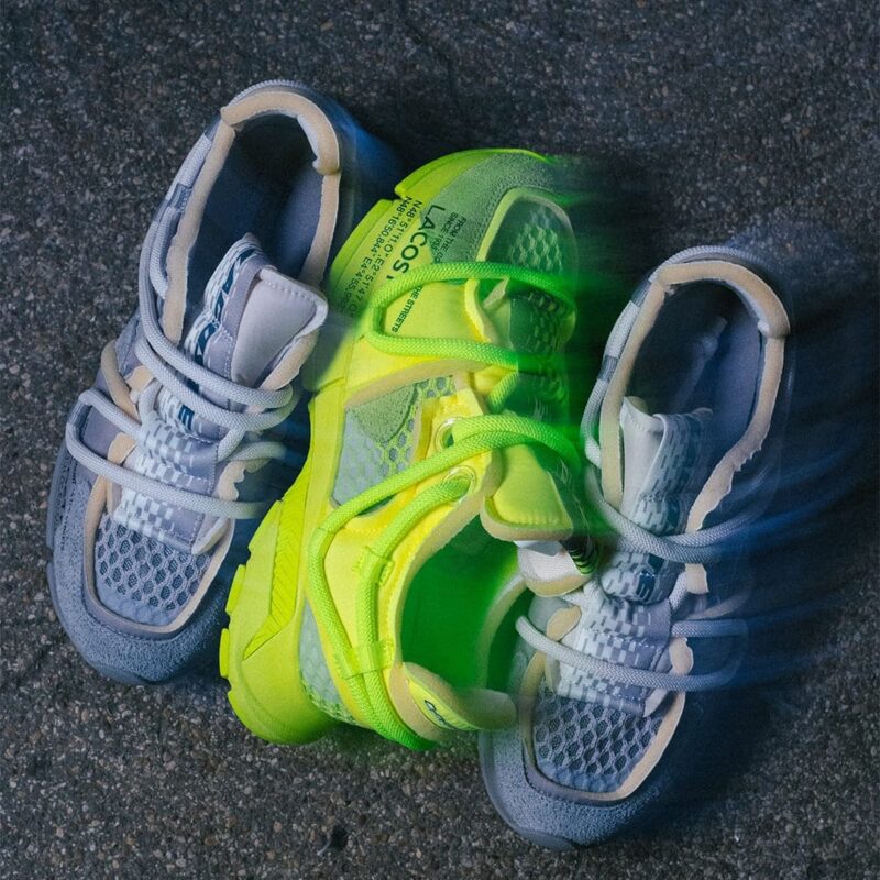 Die Franzosen haben unter einer neuen kreativen Leitung nun aber offenbar höhere Ansprüche. Und das drückt sich auch im für Lacoste-Verhältnisse mutigen Design des L003 Active Runway aus. Der Fashion-Einfluss ist ebenso unübersehbar wie manche Copycat-Elemente. So erinnern die aufgedruckten Geo-Daten, die zur ersten Fabrik im französischen Troyes führen, in ihrem Stil doch an das Off-White x Nike-Design. Und die deutlich überdimensionierte Midsole teilt sich der L003 Active Runway gleich mit einem Dutzend anderer Fashion-Sneaker. Trotz dieser Einwände gelingt es Lacoste, dass ihr Mix aus Fashion, Sportswear und Running-Technologie zum Hingucker wird – ganz besonders im neongelben Colorway, welcher farblich doch sehr einem Tennisball ähnelt. Auch so kann man die eigene History zitieren.