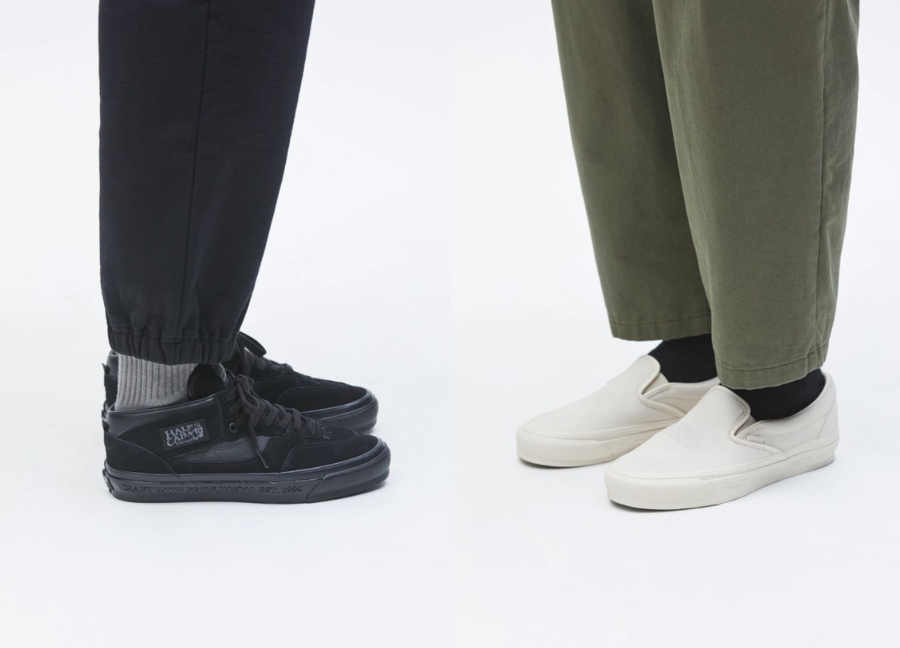 Bei dieser Collabo begegnen sich gleich zwei Streetwear-Legenden. Während viele Vans Sneaker inzwischen echten Klassiker-Status besitzen, so kann man dieses Etikett auch dem japanischen Streetwear-Label Neighborhood anheften. Da erscheint eine Zusammenarbeit auf zwei der beliebtesten Vans-Silhouetten – Slip On und Half Cab – nur logisch.