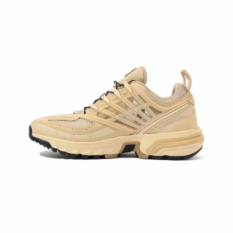 Der große Erfolg der bisherigen ACS Pro Advanced-Releases führt fast zwangsweise zu weiteren Drops in neuen Colorways. Die Bilder von Hikingpatrol zeigen einen sandfarbenen, monochromen Style, der inoffiziell schon den Namen „Safari“ erhielt. Optisch muss man hier wirklich an eine Wüstensafari denken, für den der moderne Trail-Schuh die optimale Wahl wäre. Die Abkürzung „ACS“ steht für das von Salomon entwickelte „Agile Chassis System“, das für den bestmöglichen Halt und Stabilität auf verschiedenen Belägen sorgen soll. Eine ähnliche Aufgabe erfüllt die bewährte „All Terrain Contragrip“-Außensohle aus strapazierfähigem Gummi.