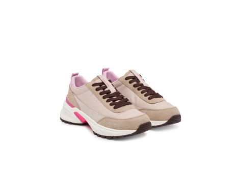 De Calvin Klein Hike Runner MG Nylon Mix dames sneakers combineert verschillende materialen, zoals leer en nylon, voor een moderne en comfortabele schoen voor dagelijks gebruik. De afgeronde punt zorgt voor een aangenaam draagcomfort, terwijl de gestructureerde zool extra grip biedt op verschillende ondergronden. Het kleurenschema in beige- en roze tinten creëert een vrouwelijke en veelzijdige uitstraling. De sneaker is voorzien van een praktische vetersluiting, die een individueel aanpasbare pasvorm mogelijk maakt. Subtiele logo-details zorgen voor discrete accenten die het geheel elegant afmaken. Door de combinatie van materialen en design is deze schoen ideaal voor dagelijks gebruik en combineert hij modieuze stijl met functionaliteit.