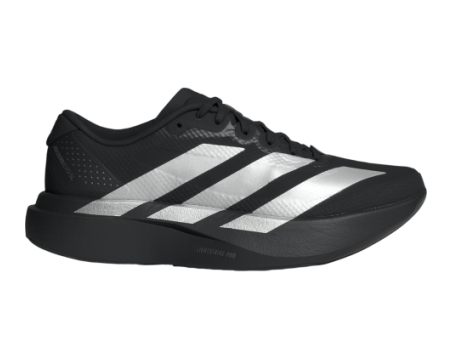 Der adidas Originals Adizero Evo SL ist ein technischer Laufschuh, der speziell für Straßenläufe entwickelt wurde. Mit einem leichten, gestrickten Obermaterial bietet er eine luftige und leichtgewichtige Passform. Die Zwischensohle verwendet die innovative LIGHTSTRIKE PRO Schaumtechnologie, die für eine energiereiche Dämpfung sorgt und schnelle Übergänge beim Laufen unterstützt. Die neutrale Plattform mit einem 7 mm Fersenabsatz bietet eine ausgewogene Fußpositionierung, die sowohl für Rennen als auch für tägliche Trainingsläufe geeignet ist. Das Design ist schlank und von der Rennstrecke inspiriert, wobei die silberfarbenen drei Streifen und das schwarze Grundmaterial einen modernen und sportlichen Look prägen. Mit einem Gewicht von nur 224 Gramm bietet der Schuh eine federleichte Performance, die Geschwindigkeit und Komfort vereint. Der Schnürverschluss sorgt für einen sicheren Sitz. Dieser Schuh richtet sich vor allem an Frauen, die Wert auf ein schnelles Lauferlebnis auf der Straße legen.
