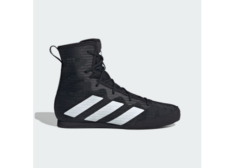 Der adidas Originals BOX HOG 4 K ist ein sportlicher Schuh in Schwarz mit regulärer Passform und Schnürsenkeln. Das Obermaterial besteht aus einer Kombination aus Textil und Synthetik, welche einen einlagigen Ripstop-Mesh-Aufbau bietet und dadurch leicht und strapazierfähig ist. Die Einlegesohle ist ebenfalls aus Textil gefertigt, für ein angenehmes Tragegefühl. Die Gummiaußensohle sorgt für eine optimale Traktion und Beweglichkeit in alle Richtungen, ideal für schnelle und vielseitige Bewegungen. Der Schuh verfügt über eine verstärkte Innenseite, die zusätzlichen Halt und Schutz bietet. Das hohe Design mit Schnürung verschafft dem Fuß Stabilität und unterstützt ihn bei intensiven Aktivitäten. Das Modell eignet sich besonders für Boxsportarten, da es Bewegungsfreiheit und Halt vereint.