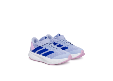 Der adidas Originals Duramo SL2 ist ein sportlicher Schuh mit regulärer Passform, der mit elastischen Schnürsenkeln und einem praktischen Klettverschlussriemen ausgestattet ist. Das Obermaterial besteht aus einem Sandwich-Mesh kombiniert mit synthetischen Materialien, was für Atmungsaktivität und Leichtigkeit sorgt. Die Lightmotion-Zwischensohle bietet eine federnde Dämpfung für mehr Komfort bei sportlichen Aktivitäten. Die abriebfeste Non Marking Gummiaußensohle gewährleistet eine hohe Strapazierfähigkeit und hinterlässt keine Spuren auf Böden. Diese Kombination macht den Schuh ideal für Fitness- und Alltagsaktivitäten, wobei ein hoher Tragekomfort und Langlebigkeit im Vordergrund stehen. Die Farbkombination in Hellblau mit dunkelblauen adidas-Streifen und rosa Akzenten verleiht dem Schuh einen frischen Look.