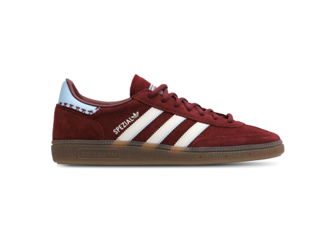 Der adidas Originals Handball Spezial ist ein klassischer Herrenschuh in kastanienbrauner Farbe mit weiß abgesetzten Streifen und einem hellblauen Detail an der Ferse. Das Obermaterial besteht aus hochwertigem Wildleder, was dem Schuh ein elegantes und zeitloses Aussehen verleiht. Die Sohle ist braun transparent und bietet guten Grip und Komfort auf unterschiedlichen Untergründen. Der Schuh ist inspiriert von klassischen Handballschuhen und eignet sich perfekt für den sportlichen Freizeitlook oder die sportlich-legere Alltagsgarderobe. Die flache Silhouette macht ihn vielseitig kombinierbar, nicht nur beim Sport, sondern auch als modischer Sneaker für den Alltag. Das Modell gehört zur adidas Originals Linie und verbindet Retro-Design mit modernem Tragekomfort.