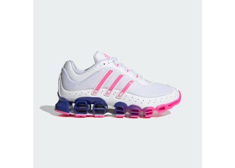 Der adidas Originals Megaride W ist ein moderner Schuh in Weiß mit einem Obermaterial aus atmungsaktivem Mesh und einem Schmutzfang aus synthetischem Material. Die unverwechselbaren Streifen aus TPU setzen stylische Akzente. Der Schuh verfügt über einen gepolsterten Schaft aus Neopren, der für zusätzlichen Komfort sorgt, sowie ein weiches Textilfutter. Die Megaride Zwischensohle ermöglicht eine dämpfende Wirkung und unterstützt die Fußbewegung. Die robuste Gummiaußensohle bietet guten Grip und Langlebigkeit. Die reguläre Passform und die Schnürsenkel gewährleisten eine individuelle Anpassung. Insgesamt verbindet dieser Schuh modernes Design mit funktionalen Materialien, die Komfort und Stabilität fördern. Er eignet sich ideal für den Alltag und sportlich-lässige Looks.