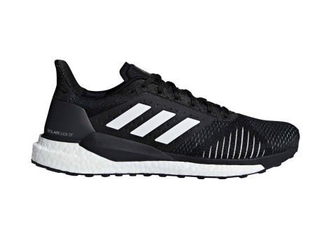 Der adidas Originals Solar Glide ST ist ein vielseitiger Laufschuh, der durch seine stoßdämpfende Konstruktion und rutschfeste Gummisohle besonders beim Laufen hohen Komfort und Sicherheit bietet. Das Modell kommt in der Farbe Core Black und zeichnet sich durch eine atmungsaktive Obermaterialkombination aus, die gute Belüftung und eine angenehme Passform garantiert. Die reinweißen ikonischen drei Streifen setzen dabei einen klaren optischen Akzent. Die Boost-Mittelsohle sorgt für hervorragende Energierückgabe und Federung beim Lauf, wodurch Ermüdung reduziert wird. Zusätzlich stabilisiert die Konstruktion den Fuß, was besonders bei längeren Läufen oder Läufern mit Stabilitätsbedarf vorteilhaft ist. Der Schuh hat eine niedrige Schnürung und ist als Low-Silhouette ausgeführt. Insgesamt ist der Solar Glide ST ein sportlicher, funktionaler Schuh von adidas, der sich ideal zum Laufen und für den Fitnessbereich eignet.