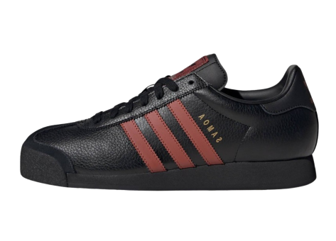 Der adidas Originals Samoa ist ein klassischer Sneaker mit einem sportlich-eleganten Design. Der Schuh präsentiert sich in einer Kombination aus schwarzem Leder mit drei markanten braunen Streifen an der Seite und einem goldfarbenen Schriftzug "SAMOA". Das Obermaterial besteht aus hochwertigem Leder, das für Langlebigkeit und einen edlen Look sorgt. Die Form ist niedrig geschnitten (Low-Top) und bietet eine klassische Silhouette, die modisch zeitlos wirkt. Die robuste Gummisohle sorgt für guten Grip und Komfort bei alltäglichen Aktivitäten. Der Schuh ist vor allem als Lifestyle- und Fashion-Schuh gedacht, inspiriert von Retro-Sneakern aus den 70er und 80er Jahren. Er eignet sich hervorragend für den casual Gebrauch und lässt sich vielseitig kombinieren. Dieses Modell ist weder speziell für Outdoor-Nutzung noch für eine bestimmte Sportart ausgelegt. Der adidas Samoa verbindet Komfort, Vintage-Design und Qualität von adidas Originals in einem stylischen Sneaker für den Alltag.