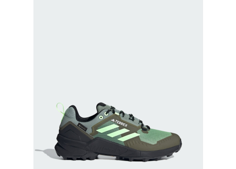 Der adidas Terrex Swift R3 GORE-TEX ist ein vielseitiger Trekkingschuh, der das leichte Design und die Dämpfung eines Trailrunningschuhs mit der Stabilität eines Bergstiefels vereint. Er verfügt über eine ultraleichte Lightstrike-Zwischensohle, die für eine effektive Dämpfung sorgt, sowie eine Pro-Moderator-Komponente, die seitliche Stabilität bietet und den Mittelfuß bei langen Unternehmungen schützt. Der Schuh ist mit einer Continental-Gummiaußensohle ausgestattet, die auf verschiedenem Gelände wie Fels, Schlamm und Steinen sowohl bei trockenem als auch nassem Untergrund sicheren Halt bietet. Die wasserdichte GORE-TEX-Membran sorgt für Atmungsaktivität und schützt gleichzeitig vor Wasser und Feuchtigkeit. Das Obermaterial besteht aus Mesh mit nahtlosen Overlays und ist zu mindestens 50 % aus recyceltem Material gefertigt. Weitere Merkmale sind das Speed-Lacing-System, eine vorgeformte Einlegesohle sowie eine an das Obermaterial angepasste Zunge. Der Schuh ist speziell für Outdoor-Aktivitäten entwickelt und bietet durch seine Kombination aus Leichtigkeit, Stabilität und Wetterschutz eine optimale Performance für Trailrunning und Trekking. Das Produkt gehört zur adidas Terrex Linie und ist in einem grünen Farbton gestaltet.