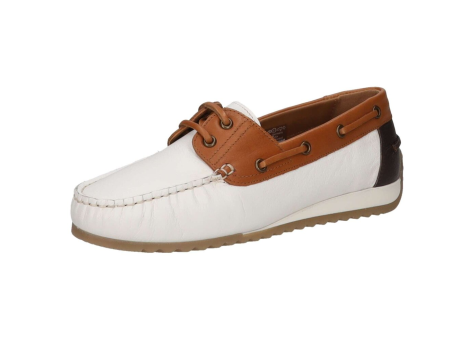 Der Ara New Port Slipper für Damen präsentiert sich in einer eleganten Farbkombination aus Weiß, Cognac und einem dunkleren Braunton an der Ferse. Die Größe des Modells ist 43 EU. Der Slipper besticht durch sein klassisches Design und eignet sich besonders für den alltäglichen Gebrauch. Durch die Verwendung hochwertiger Materialien bietet er Komfort und Langlebigkeit. Das Modell ist vielseitig kombinierbar und passt gut zu legeren sowie eleganteren Outfits. Die bequeme Passform macht diesen Slipper zu einem idealen Begleiter für Freizeit und Alltag.