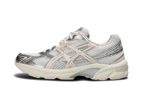 Der Asics Gel-1130 Silver Pack Pink für Damen ist ein eleganter Sneaker, der durch seine Kombination aus funktionaler Gel-Technologie und einem dezenten, femininen Farbdesign besticht. Das Obermaterial besteht aus einem atmungsaktiven cremefarbenen Mesh, das für angenehme Flexibilität sorgt. Silberfarbene Polyurethan-Überzüge mit soften Rosatönen prägen die klassische Asics-Optik und geben dem Schuh einen stilvollen Akzent. Das bekannte Gel-Logo ziert die Ferse, während sich in der Zwischensohle eine pinke Gel-Dämpfung befindet, die Komfort und Stoßabsorption bietet. Die Außensohle ist ebenfalls in einem zarten Rosaton gehalten und rundet das Design harmonisch ab. Der Schuh ist speziell für Damen konzipiert und verbindet Funktionalität mit einer modisch zurückhaltenden Eleganz. Insgesamt bietet der Asics Gel-1130 Silver Pack Pink einen leichten, flexiblen und stilvollen Begleiter für den Alltag oder sportliche Freizeitaktivitäten.