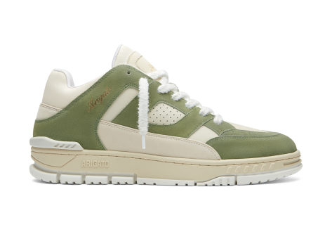 Der Axel Arigato Area Lo Sneaker ist eine Hommage an den Basketballstil der 90er Jahre. Handgefertigt in Portugal, kombiniert dieser Schuh hochwertiges Leder mit recyceltem Polyester, um eine nachhaltige und hochwertige Optik zu gewährleisten. Das Obermaterial besteht aus mehreren Paneelen, die mit Perforationen versehen sind und seitlich mit einem ausgeprägten Fersenspoiler für zusätzlichen Halt ausgestattet sind. Das Design besticht durch eine Kombination aus cremeweißen und olivgrünen Farbtönen, die einen kühlen Retro-Look erzeugen. Die Schnürsenkel sind in Weiß gehalten und sorgen für einen sicheren Sitz. Die Sohle ist im klassischen Stil gehalten, unterstützt den Fuß komfortabel und rundet die sportlich-elegante Optik ab. Dieser Sneaker eignet sich ideal für modebewusste Menschen, die sportliche Vintage-Styles bevorzugen und Wert auf Qualität und nachhaltige Materialien legen. Der Schuh vereint zeitlosen Style mit komfortabler Handarbeit und einem nachhaltigen Ansatz.