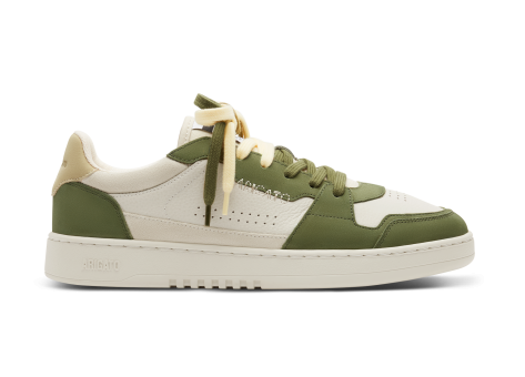 Der Axel Arigato Dice Lo Sneaker ist eine moderne Interpretation von klassischen Court-Schuhen mit Vintage-Charme. Handgefertigt in Portugal, kombiniert er hochwertige Materialien wie Nubuk, Wildleder und Leder für eine ansprechende Optik und Haptik. Das Innenfutter besteht aus recyceltem Polyester, das zu einem nachhaltigen Tragekomfort beiträgt. Die erhöhte, individuell geformte Sohle besteht aus einer Mischung aus Gummi und recyceltem Gummi, was Langlebigkeit und guten Grip gewährleistet. Das besondere Detail dieses Modells sind die lang gestickten Logos auf dem Schuh, die dem Design eine dezente, aber stylische Note verleihen. Zusätzlich wird ein zweites Paar bunter Schnürsenkel mitgeliefert, sodass der Look flexibel und vielseitig an jede Garderobe angepasst werden kann. Der Sneaker besticht durch sein ausgewogenes Farbspiel aus cremefarbenen und olivgrünen Elementen und ist ideal für modebewusste Träger, die Wert auf Qualität und nachhaltige Materialien legen.