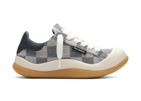 Der Axel Arigato Squish Sneaker präsentiert eine neue, skulpturale Form, die vom Modell Clean 90 inspiriert ist. Er wird in Portugal handgefertigt und besteht aus Gingham-Denim und glattem Leder, wodurch eine abgerundete Silhouette entsteht. Kontrastierend dazu sind die Schnürsenkel aus Wolle gestaltet. Die Sohle hat eine Stärke von 30 mm und besteht aus Gummi. Das Innere des Schuhs ist mit einer Mischung aus recyceltem Polyester, Leder und Mikrofaser gefüttert, was für Komfort und Langlebigkeit sorgt. Der Schuh kombiniert modisches Design mit hochwertigen Materialien und bietet durch seine besondere Form und Polsterung ein angenehmes Tragegefühl.