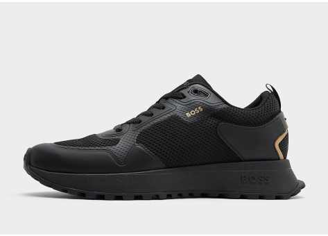 Der BOSS Sport Contrast Sneaker ist ein moderner Herrenschuh von BOSS, der mit einem pflegeleichten Synthetik-Obermaterial aus Mesh und Thermo-Materialien gefertigt ist. Das technische und zeitgenössische Design wird durch die Kombination von Mesh, Thermo-Material und auffälligen Farbdetails am hinteren Teil des Schuhs hervorgehoben. Die leichte EVA-Sohle mit Gummiprofil sorgt für eine gute Dämpfung und Traktion, wodurch auch auf glatten Straßen sicherer Halt gegeben ist. Durch den Keilabsatz wird eine angenehme Höhe erreicht, die Komfort und Stil gleichermaßen bietet. Der Sneaker ist besonders für schmale bis normale Füße in Weite F geeignet und besticht zudem durch eine dicke Schaumstoff-Zwischensohle für zusätzlichen Komfort. Der Schnürverschluss garantiert sicheren Halt. Die hochwertigen Materialien sorgen für ein robustes und zugleich leichtes Tragegefühl, ideal für den Alltag und Freizeit. Die Schuhe kommen in einem eleganten Schwarz mit goldenen Akzenten, die das sportliche Design abrunden. Die Reinigung und Pflege gestaltet sich dank des synthetischen Materials unkompliziert. Besonders passend kombinierbar ist der Schuh zu engen Jeans oder lässigen, weit geschnittenen Oberteilen für einen entspannten Freizeitlook. Insgesamt bietet der BOSS Sport Contrast Sneaker eine stilvolle und gleichzeitig komfortable Wahl für modebewusste Herren, die Wert auf Funktionalität legen.