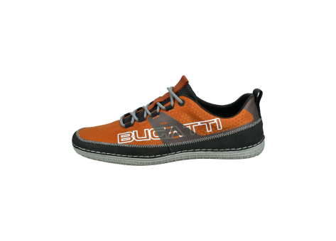 Der Bugatti man AFF ist ein Herren-Slipper, der durch sein auffälliges orangefarbenes Design besticht. Der Schuh ist in der Größe 46 EU erhältlich und kombiniert Stil mit Komfort. Das Obermaterial präsentiert sich in einem sportlichen Look mit dem deutlich sichtbaren Markenlogo "BUGATTI" an der Seite. Die Sohle ist flach und bietet guten Halt, ideal für den lässigen Alltag. Das Modell zeichnet sich durch eine einfache Schlupfform aus, wodurch das An- und Ausziehen besonders unkompliziert ist. Die Farbkombination aus Orange, Grau und Schwarz verleiht dem Schuh eine moderne und jugendliche Note, die sich vielseitig zu legeren Outfits tragen lässt. Der Schuh eignet sich perfekt als modischer Begleiter für entspannte Freizeitaktivitäten und Casual-Looks. Aufgrund der Form und Bauweise fällt dieser Schuh in die Kategorie der Slipper, die Komfort und Stil vereinen.