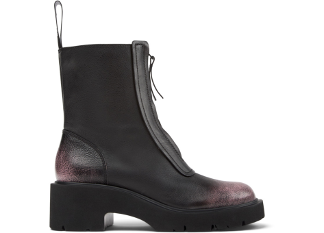 Der Camper Milah ist ein mittelhoher Damenstiefel mit urbanem Design, hergestellt aus hochwertigem Rinds- bzw. Kalbsleder in Schwarz und Pink. Ausgestattet ist der Schuh mit einem OrthoLite® Recycled™ Fußbett, das für bequemen Tragekomfort sorgt, sowie einer leichten EVA-Laufsohle, die Stoßdämpfung bietet und die Stabilität erhöht. Das Modell vereint modernes Styling mit funktionellen Eigenschaften und eignet sich besonders gut als Winterstiefel. Mit seiner robusten Verarbeitung und dem modischen Look ist der Milah von Camper ideal für den täglichen Einsatz in der Stadt geeignet.