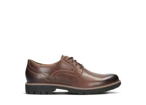 Der Clarks Batcombe Hall ist ein eleganter Herrenschuh in dunklem Braun (dark tan) aus hochwertigem Leder. Der Business-Schuh besticht durch sein klassisches Design mit einer robusten und rutschfesten Profilsohle, die auch Komfort bei längeren Tragezeiten garantiert. Der Schuh ist als Schnürschuh ausgeführt und bietet durch die sorgfältige Verarbeitung und das glatte Leder eine stilvolle Optik, die sich besonders gut für den Business- oder formellen Anlass eignet. Die Größe 42,5 EU entspricht einem typischen Herrenschuhmaß. Clarks ist bekannt für hochwertige Verarbeitung und langlebige Materialien, die den Schuh zu einer edlen und praktischen Wahl machen.