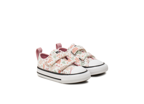 Der Converse Chuck Taylor All Star Fall Leaves Easy On ist ein kindgerechter Sneaker, der speziell für Herbstabenteuer entwickelt wurde. Das Design zeigt ein herbstliches Blättermuster in zarten Farben, das den saisonalen Look unterstreicht. Die Schuhe verfügen über praktische Klettverschlüsse, die ein einfaches An- und Ausziehen ermöglichen, was gerade für Kinder sehr hilfreich ist. Die robuste Gummisohle mit klassischer weißen Außenseite und schwarzer Zierlinie sorgt für guten Halt und Langlebigkeit im Alltag. Das Obermaterial ist möglicherweise aus Canvas gefertigt, typisch für Converse, bietet Strapazierfähigkeit und Bequemlichkeit. Dieser Schuh verbindet das klassische Converse-Design mit kindgerechter Funktionalität und einem saisonalen Muster, wodurch er ideal für spaßige Aktivitäten im Herbst geeignet ist.