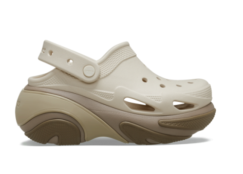 Der Crocs Bubble Crush ist ein auffälliger Clog, der Streetstyle mit High Fashion kombiniert und für einen einzigartig femininen Look sorgt. Er besitzt eine schlanke, feminine Form und eine überdimensionierte Außensohle mit Gumminoppen, die nicht nur besseren Halt bietet, sondern auch besonders stylish wirkt. Eine markante Besonderheit ist das 69 mm hohe Plateau, das den Schuh optisch auf ein neues Level hebt. Strukturierte Details an Ferse, Zehenbox und Polsterkragen verleihen dem Design zusätzliche Akzente. Für die individuelle Gestaltung lassen sich sowohl der Fersenriemen als auch die Oberseite mit Jibbitz™-Ansteckern personalisieren. Die Technologie Iconic Crocs Comfort™ garantiert, dass der Schuh leicht, flexibel und rundum komfortabel ist. Insgesamt verbindet der Bubble Crush Clog modische Ästhetik mit hohem Tragekomfort und einer individuellen Note.