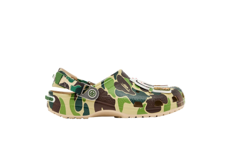 Der Crocs Classic Clog in der limitierten A Bathing Ape ABC Camo Green Edition kombiniert den ikonischen Komfort der Crocs Classic Clogs mit dem auffälligen ABC-Camouflage-Muster von BAPE in lebendigen Grüntönen. Hergestellt aus leichtem Croslite-Schaum bieten diese Clogs ein angenehmes Tragegefühl über den ganzen Tag hinweg. Der verstellbare Fersenriemen sorgt für einen sicheren Sitz und zusätzliche Stabilität. Die klassischen Belüftungsöffnungen fördern die Atmungsaktivität sowie die einfache Reinigung der Schuhe. Die strukturierte Innensohle bietet eine massageähnliche Wirkung bei jedem Schritt und macht den Clog ideal für den Freizeitgebrauch und das entspannte Tragen zu Hause. Das markante Streetwear-Design trifft hier auf praktische Eigenschaften, so dass diese Schuhe sowohl stilvoll als auch funktional sind.