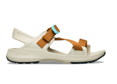 Die Crocs Quick Trail ist eine sportliche und funktionale Abenteuersandale, die für den aktiven Alltag konzipiert wurde. Sie verfügt über ein Obermaterial aus strukturiertem, anpassbarem Gewebe, das ein einfaches An- und Ausziehen ermöglicht. Die vollständig geformte Croslite™-Basis sorgt für eine leichte Strapazierfähigkeit und Komfort. Inspiriert von der Quick Trail Low Silhouette, ist die Sandale für verschiedene Aktivitäten bereit und bietet dank der Gumminoppen auf der Außensohle einen verbesserten Halt. Zusätzlich ist das Design wasserabweisend, was die Sandale auch für nasse Bedingungen geeignet macht. Die Verwendung von Nylonringen zwischen Croslite™ und Gewebe erhöht die Widerstandsfähigkeit und die Struktur der Sandale. Insgesamt ist die Crocs Quick Trail eine robuste, bequeme und vielseitige Sandale für Outdoor-Abenteuer und den Alltag.