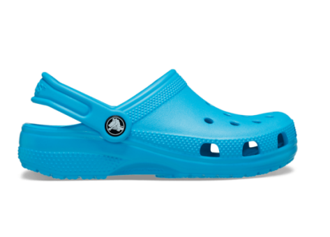 Der Crocs Classic Clog für Kleinkinder ist ein vielseitiger, bequemer und leichter Slipper, der ein einfaches An- und Ausziehen ermöglicht. Gefertigt aus dem strapazierfähigen Croslite™-Material, das zu 25 % aus bio-zirkulären Komponenten wie Speiseöl besteht, bietet dieser Schuh außergewöhnlichen Komfort und Halt dank seines ergonomischen Designs. Der Schuh ist wasserfreundlich, schwimmfähig, besonders atmungsaktiv durch Belüftungsöffnungen und leicht zu reinigen. Zudem verfügt er über einen kippbaren Fersenriemen für sicheren Sitz. Das schaumstoffartige Fußbett sorgt für maximalen Komfort, während die strukturierte Gummisohle Rutschfestigkeit bietet. Der Crocs Classic Clog vereint ikonischen Komfort mit Flexibilität und einem 360°-Tragegefühl. Das Design ist geprägt von der Farbe Venetian Blue und kann individuell mit Jibbitz-Anhängern personalisiert werden. Der Crocs Classic Clog ist ideal für den Alltag von Kleinkindern, die einen leichten, bequemen und praktischen Schuh benötigen.