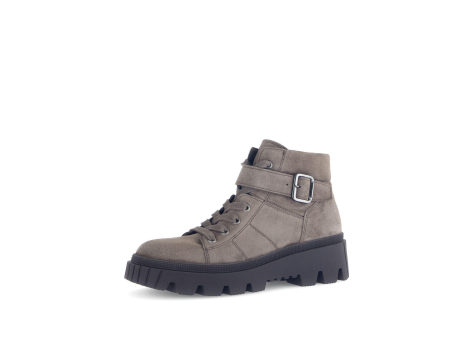 Die Gabor Stiefelette 51.823.10 für Damen präsentiert sich in einem modernen Grau und ist in der Größe 42 erhältlich. Der Schuh zeichnet sich durch seine robuste, profilierte Sohle aus, die nicht nur für eine gute Trittfestigkeit sorgt, sondern auch optisch einen kraftvollen Akzent setzt. Das Obermaterial ist aus weichem, hochwertigem Nubukleder gefertigt, das für eine angenehme Haptik und Langlebigkeit sorgt. Die Kombination aus Schnürung und einem dekorativen Riemen mit einer verstellbaren Metallschnalle bietet nicht nur sicheren Halt, sondern auch einen stylischen Look. Die Stiefelette besitzt eine mid-cut Silhouette, die sowohl Schutz als auch Bewegungsfreiheit gewährleistet. Insgesamt verbindet das Modell Komfort, Stabilität und ein zeitgemäßes Design und eignet sich ausgezeichnet für den anspruchsvollen Alltag im Herbst und Winter. Die Marke Gabor steht dabei für Qualität und modische Trends im Bereich Damenschuhe.