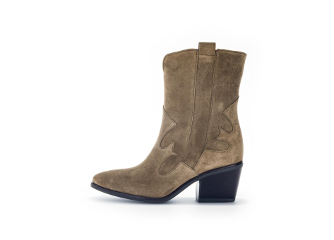 Die Gabor komfortablen Western-Boots für Damen zeichnen sich durch ihr elegantes und zugleich rustikales Design aus. Diese in Braun gehaltenen Stiefeletten sind aus einem hochwertigen, samtigen Veloursleder gefertigt, was ihnen eine edle und natürliche Optik verleiht. Die Stiefeletten verfügen über einen mittelhohen, blockartigen Absatz, der nicht nur Stabilität bietet, sondern auch den typischen Western-Stil unterstreicht. Der Schaft reicht bis knapp über den Knöchel und besitzt dekorative Nähte und Einsätze, die das Western-Thema akzentuieren. Durch die Schlaufen am oberen Schaft lassen sich die Stiefeletten bequem an- und ausziehen. Das Modell ist ideal für den modischen Alltag und passt sowohl zu Jeans als auch zu Röcken oder Kleidern, wodurch es vielseitig kombinierbar ist. Gabor als Marke steht dabei für Qualität, Komfort und modisches Design, was bei diesem Schuhmodell deutlich zum Ausdruck kommt.