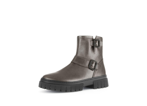 Die Gabor Komfortschuhe sind stilvolle Damen-Stiefeletten in der Farbe Silber, verfügbar in Größe 44 EU. Diese Schuhe zeichnen sich durch eine robuste, profilierte Gummisohle aus, die optimalen Halt und Stabilität bietet. Die Stiefeletten sind aufgrund ihres Designs und der funktionalen Sohle ideal für den Alltag geeignet, besonders wenn Komfort und Sicherheit wichtig sind. Das Material wirkt hochwertig und langlebig, wobei die Schuhe einen modernen und gleichzeitig zeitlosen Look besitzen. Die Details wie der Reißverschluss auf der Seite sorgen für Praktikabilität beim An- und Ausziehen. Insgesamt präsentiert sich das Modell als bequeme und zugleich modische Wahl für Damen, die Wert auf zuverlässige und gut verarbeitete Schuhe legen.