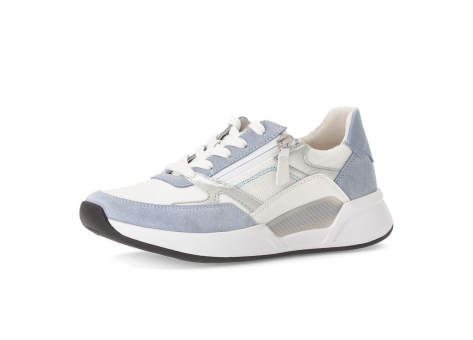 Der Gabor Komfortschuh für Damen präsentiert sich in einer ansprechenden blau-weißen Farbkombination und ist in der Größe 42 EU erhältlich. Der Schuh hat ein modernes Design mit Schnürsenkelverschluss und verfügt über einen Reißverschluss an der Seite, der das An- und Ausziehen erleichtert. Die Sohlen sind weiß mit einer schwarzen Laufsohle, die guten Halt bietet. Das Obermaterial scheint aus einer Kombination von Glattleder und Veloursleder zu bestehen, was für Komfort und Stabilität sorgt. Das Innenfutter ist weich gepolstert und zielt darauf ab, höchsten Tragekomfort zu gewährleisten. Dieser Schuh ist ideal für den Alltag und überzeugt durch seine Kombination aus modischem Stil und Komfort, typisch für die Marke Gabor.