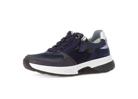 Die Gabor Komfortschuhe, Modell 86.847.66, sind Damen-Sneaker in der Farbe Blau und Größe 44 EU. Die Schuhe verbinden sportlichen Stil mit hohem Tragekomfort, ideal für den Alltag. Sie verfügen über eine modische Kombination aus verschiedenen Materialien, darunter textile und veloursartige Elemente, die für eine ansprechende Optik sorgen. Das Design beinhaltet eine klassische Schnürung und zusätzlich einen seitlichen Reißverschluss für ein einfaches An- und Ausziehen. Die Sohle ist robust und bietet guten Halt sowie Stabilität. Die Schuhe sind als Low-Sneaker geschnitten und ermöglichen somit eine flexible Bewegungsfreiheit um den Knöchel. Mit ihrer Kombination aus Komfort, Funktionalität und sportlichem Design sind sie vielseitig einsetzbar und passen sowohl zu casual Looks als auch zu sportiv-eleganter Kleidung.