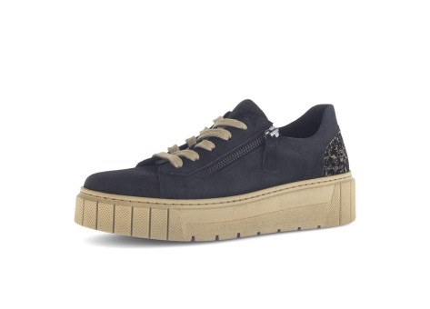 Der Gabor low Sneaker für Damen ist ein bequemer Schuh in der Farbe Blau, Größe 38 EU. Er besitzt eine breite, profilierte, beige Sohle, die optisch einen Plateau-Effekt erzeugt, was den Schuh sehr modern und modisch macht. Die Schuhzunge und der Bereich an der Ferse heben sich farblich hervor, wobei der Fersenbereich eine auffällige, gemusterte Optik hat. Der Schuh ist ausgestattet mit einem Reißverschluss an der Außenseite, der das An- und Ausziehen erleichtert. Zudem verfügt der Sneaker über Schnürsenkel, die für eine individuelle Anpassung sorgen. Der Schaft des Schuhs ist aus einem glatten Material gefertigt. Der Schuh wurde als komfortabler Begleiter für den Alltag konzipiert, ideal für den Casual- oder Fashion-Bereich. Er eignet sich besonders gut für den Einsatz im urbanen Umfeld und für Freizeitaktivitäten, bei denen Bequemlichkeit und Stil gefragt sind. Die Marke Gabor steht für qualitativ hochwertige Komfortschuhe, die sowohl modisch als auch funktional sind.