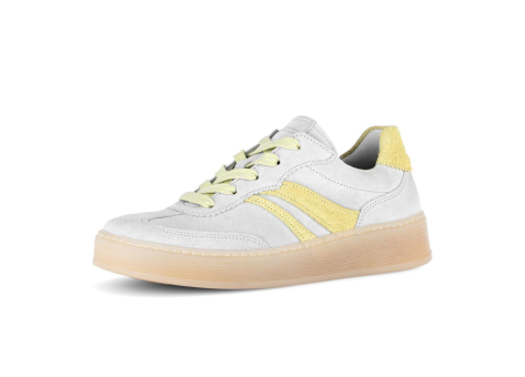 Die Gabor Komfortschuhe sind sportliche Schnürschuhe für Damen, die in Weiß mit hellgelben Akzenten gestaltet sind. Diese Schuhe besitzen eine bequeme Passform und sind in der Größe 42 EU verfügbar. Das Design zeichnet sich durch eine Kombination aus modernen und funktionalen Elementen aus, die eine angenehme Nutzung im Alltag ermöglichen. Die Gummisohle bietet guten Halt und eine leichte Dämpfung für mehr Gehkomfort. Aufgrund ihres Designs und ihrer Ausstattung sind sie ideal für Freizeitaktivitäten und den täglichen Gebrauch geeignet. Diese Schnürschuhe lassen sich gut zu sportlichen und casual Outfits kombinieren und bieten eine gelungene Verbindung von Komfort und Stil.