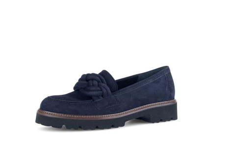 Der Gabor Slipper Trotteur in Blau ist ein eleganter Damenschuh in der Größe 40 EU. Der Schuh zeigt sich in einem klassischen Loafer-Stil mit einer auffälligen Zierknotendekoration auf dem Vorderblatt. Das Obermaterial wirkt wie Wildleder, das dem Schuh eine edle und weiche Optik verleiht. Die profilierte Laufsohle sorgt für guten Grip und Rutschfestigkeit, während der insgesamt robuste Eindruck auf eine hohe Alltagstauglichkeit hindeutet. Dank seines zeitlosen Designs lässt sich dieser Slipper vielseitig kombinieren – sowohl für Business- als auch Freizeitanlässe. Die niedrige Silhouette unterstützt einen bequemen und lässigen Auftritt. Gabor präsentiert hier einen leichtgängigen, modischen Schuh, der Komfort und Stil vereint.