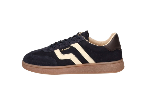 Der Gant Cuzmo ist ein modischer Herrensneaker in dunklem Marineblau mit beigen und dunkelbraunen Akzenten. Das Obermaterial besteht aus echtem Veloursleder und Glattleder, kombiniert zu einem attraktiven Retro-inspirierten Design. Das Innenmaterial ist angenehm aus Textil und Frottee, wodurch der Schuh einen hohen Tragekomfort bietet. Die herausnehmbare Decksohle ist mit Leder bezogen und ermöglicht die Verwendung von losen Einlagen. Die Laufsohle aus Gummi ist flach und sorgt für einen Alltagstauglichen Halt. Die Schnürung passt den Schuh optimal an den Fuß an und verbessert die Passform zusätzlich. Das dezente Branding von Gant und das seitliche Streifendesign runden das stilvolle Erscheinungsbild ab. Insgesamt ist der Sneaker eine sportlich-elegante Wahl für den Casualbereich, die sowohl Komfort als auch modisches Auftreten kombiniert.