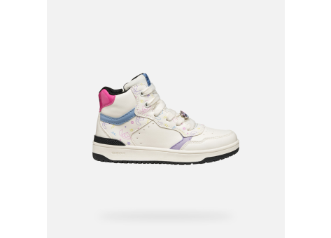 Die Geox Washiba sind Mid Sneakers für Mädchen, die durch eine Kooperation zwischen Geox und Disney entstanden sind. Das Design ist sportlich und zeigt ein mehrfarbiges Druck- und Grafikmotiv, das vom Disney-Charakter Stitch inspiriert ist. Die Schuhe sind hauptsächlich in Weiß gehalten und bestechen durch die farbigen Details. Das Obermaterial ist aus Lederoptik und bedrucktem Lederoptik-Material gefertigt, was den Schuhen eine tolle Optik und zugleich Strapazierfähigkeit für den täglichen Gebrauch verleiht. Die Schuhe sind ideal für Mädchen, die einen bequemen und stilvollen Begleiter für ihre täglichen Abenteuer suchen. Die Schuhform ist hochschnittig (Mid), was guten Halt bietet und den modischen Look unterstreicht. Die Geox Washiba verbinden Komfort mit einem spielerischen Design und eignen sich besonders für Kinder, die Sportschuhe mit einem einzigartigen, lebendigen Stil bevorzugen.