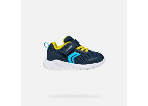 Der Geox Sprintye Babysneaker kombiniert ein modernes Design, das vom Laufsport inspiriert ist, mit Leichtigkeit und Atmungsaktivität. Das Modell präsentiert sich in Marineblau und Gelb und überzeugt durch seine sportliche, dynamische Ausstrahlung. Gefertigt aus Mesh und Material in Lederoptik, bietet der Sneaker durch seine stossgedämpfte Sohle einen hohen Tragekomfort. Für eine optimale Anpassung und komfortables Anziehen sorgen ein Klettverschluss-Riemen und elastische Schnürsenkel. Dieser Sneaker ist ideal für Freizeitaktivitäten und ergänzt spielerisch jedes Outfit von Babys.