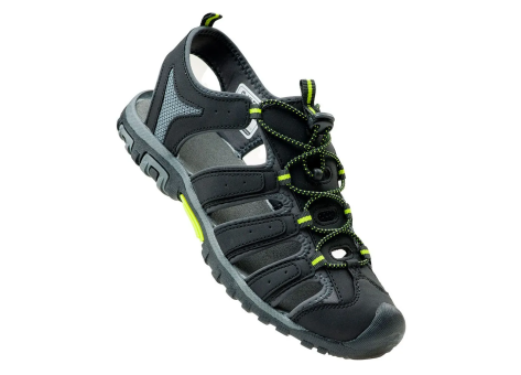 Die Hi-Tec Eritio Sandalen sind Herrenschuhe, die sich besonders durch ihr Obermaterial aus PU, Mesh und Textil auszeichnen. Das Innenfutter besteht aus Textil, was für Komfort sorgt. Die Laufsohle kombiniert robuste EVA Phylon und TPR Gummi, wodurch die Sandalen eine stabile und langlebige Sohle bieten. Dieses Modell vereint die Leichtigkeit und Atmungsaktivität von Sandalen mit einer sportlichen, funktionalen Konstruktion, geeignet für vielfältige Outdoor-Aktivitäten oder den täglichen Gebrauch bei warmem Wetter. Dank des strapazierfähigen Materials und der durchdachten Sohle sind sie sowohl bequem als auch robust. Die Sandalen sind speziell als Herrenschuhe konzipiert und bieten eine gute Passform sowie sicheren Halt durch mehrere Riemen und ein schnelles Schnürsystem.