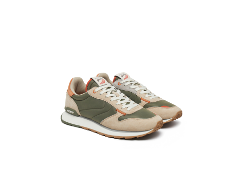 Der Hoff Rhodes Sneaker für Herren ist ein sportlich-inspirierter Schuh, der Alltagstauglichkeit mit Retro-Charme verbindet. Das Obermaterial besteht zu 55 % aus Velourleder und zu 45 % aus Textil, was dem Schuh Robustheit und eine attraktive Optik verleiht. Die Farbkombination aus Dunkelgrün, Beige und Orange verleiht dem Schuh eine frische und charaktervolle Ausstrahlung. Die Sohle setzt sich zu 70 % aus EVA und zu 30 % aus Gummi zusammen, wodurch der Schuh besonders komfortabel und langlebig für den täglichen Gebrauch ist. Eine weich gepolsterte Innensohle aus 100 % Textil mit Memory Foam sorgt für optimalen Tragekomfort, zudem ist die Innensohle herausnehmbar. Der flache Schuh verfügt über eine 7-fach Schnürung und einen rund geformten Zehenbereich. Mit einer Sohlenhöhe von 3,1 cm bietet der Sneaker eine angenehme Dämpfung. Die Passform ist mit normaler Weite (G) angegeben und fällt größengerecht aus. Diese Herrenschuhe von Hoff sind ideal für einen athletisch-modernen Look und lassen sich gut mit urbanen Outfits wie Jeans und Hemd oder einer Bomberjacke kombinieren.