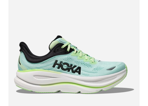 Der Hoka OneOne Bondi 9 ist ein Laufschuh, der speziell für Läufer entwickelt wurde, die auf maximale Dämpfung und Komfort bei langen Strecken Wert legen. Die Zwischensohle besteht aus super critical EVA-Schaum, der eine hervorragende Dämpfung und effektiven Schutz bietet. Das Obermaterial aus Engineered Mesh ermöglicht Atmungsaktivität an strategischen Stellen und sorgt für einen sicheren Halt, insbesondere im Mittelfußbereich, wobei es teilweise aus recycelten Materialien besteht. Die Ferse ist unten stabilisiert und oben weich, was den Druck auf das Fersenbein minimiert und für zusätzlichen Komfort sorgt. Die abriebfeste Durabrasion-Gummisohle mit grobem Profil garantiert exzellenten Grip und Langlebigkeit selbst auf anspruchsvollen Untergründen. Die geometrische Gestaltung der Außensohle sorgt für Stabilität und einen effizienten Laufstil. Der Schuh hat eine erhöhte Standhöhe und eine geformte 3D-Manschette, die den Fuß sicher umschließt. Reflektierende Details verbessern die Sichtbarkeit bei schlechten Lichtverhältnissen. Der Bondi 9 ist ein vielseitiger, hochgedämpfter Laufschuh, der performanceorientiert und modisch zugleich ist, ideal für Alltag und lange Distanzen. Die Farbe ist Luna Moth Blue Spark.