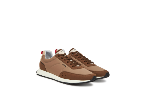 Die HUGO Icelin Sneaker von Hugo Boss verbinden einen Retro-Running-inspirierten Look mit hohem Tragekomfort und Funktionalität. Sie bestehen aus einer Kombination verschiedener Materialien, darunter Wildleder-Imitat und ein gepolsterter Nylonkörper, der für Leichtigkeit sorgt. Eine praktische Schlaufe an der Rückseite erleichtert das An- und Ausziehen. Die leichte EVA-Sohle wird von einer rutschfesten Gummibasis ergänzt, was die Haltbarkeit und die Traktion verbessert. Die zementierte Konstruktion sorgt für hohe Verschleißfestigkeit, wodurch die Sneaker sowohl für sportliche Aktivitäten als auch für den Alltag geeignet sind. Diese vielseitigen Sneaker sind eine stilvolle Ergänzung für jede moderne Garderobe und bieten eine gelungene Mischung aus Retro-Design und moderner Funktionalität.