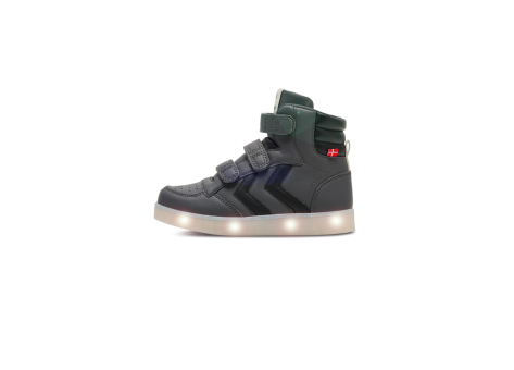 Der HUMMEL Stadil Flash Sneaker für Kinder kombiniert stylisches Design mit funktionaler Ausstattung. Der Sneaker verfügt über ein hochwertiges, vollständiges PU-Obermaterial und ein High-Top-Design, das zusätzlichen Halt und Stabilität bis zum Knöchel bietet. Die clevere Verschlusslösung besteht aus zuschneidbaren Klettverschlüssen, die sich vom Fuß bis zum Knöchel erstrecken und so für eine perfekte Passform sorgen, die auch bei aktiven Bewegungen nicht verrutscht. Der Schuh ist für normale bis breite Füße geeignet und bietet dank der leichten TPR-Laufsohle ein angenehmes Tragegefühl bei jedem Schritt. Besonderes Highlight sind die in die Laufsohle integrierten Blinklichter, die jeden Schritt sichtbar machen und Kindern viel Spaß bereiten. Die gepolsterten Zonen erhöhen den Tragekomfort und entlasten die Füße. Mit der robusten Bauweise und dem pflegeleichten Kunstleder ist der Sneaker bestens für aktive Kinder geeignet, die viel unterwegs sind. Der Schuh ist sehr leicht, was die Bewegungsfreiheit und den Komfort zusätzlich unterstützt. Dieser stylische und praktische Sneaker eignet sich ideal für den Alltag und Aktivitäten draußen und vermittelt dabei die Qualität und den Komfort der HUMMEL-Marke.